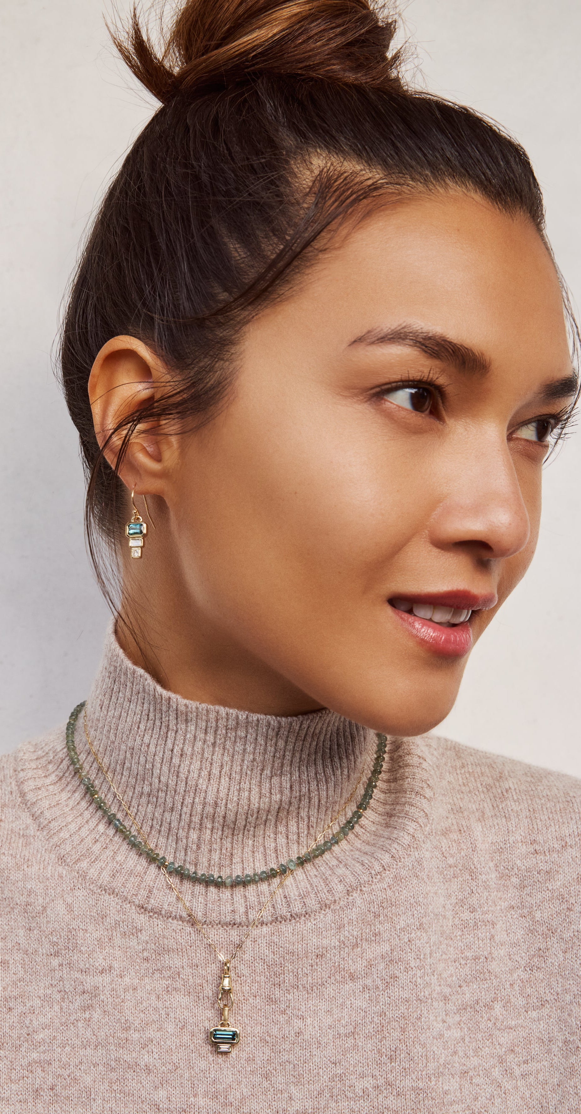 Crafted in the U.S. with sustainably sourced tourmaline and diamonds. Reclaimed 14k gold.